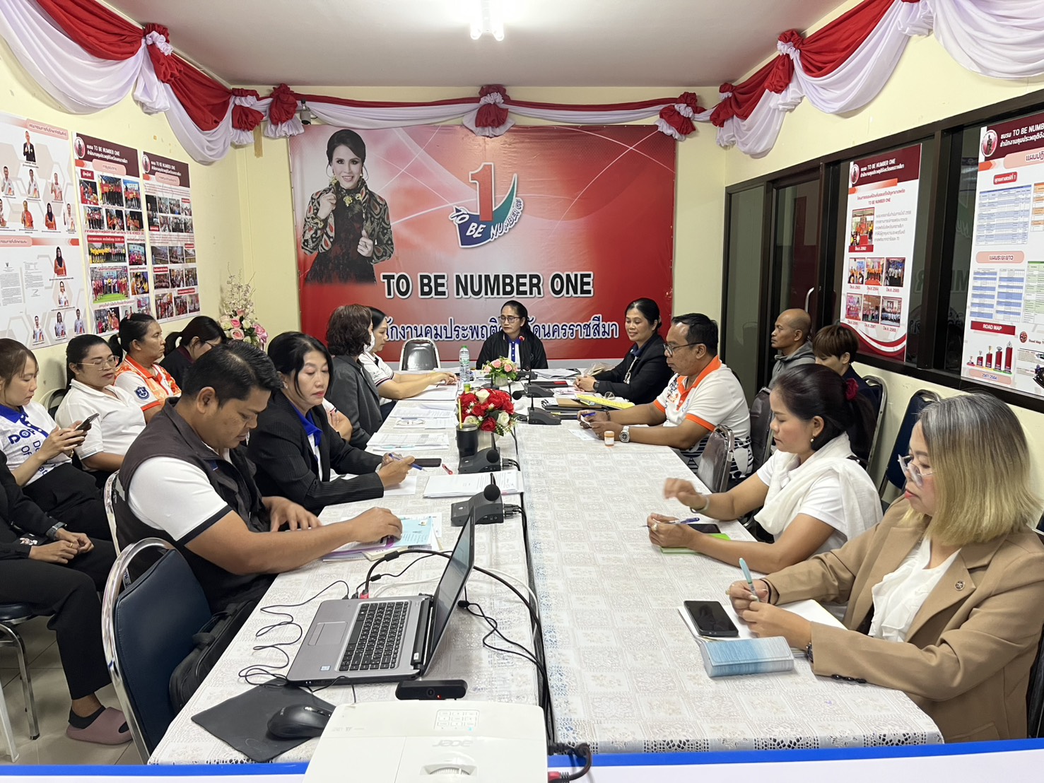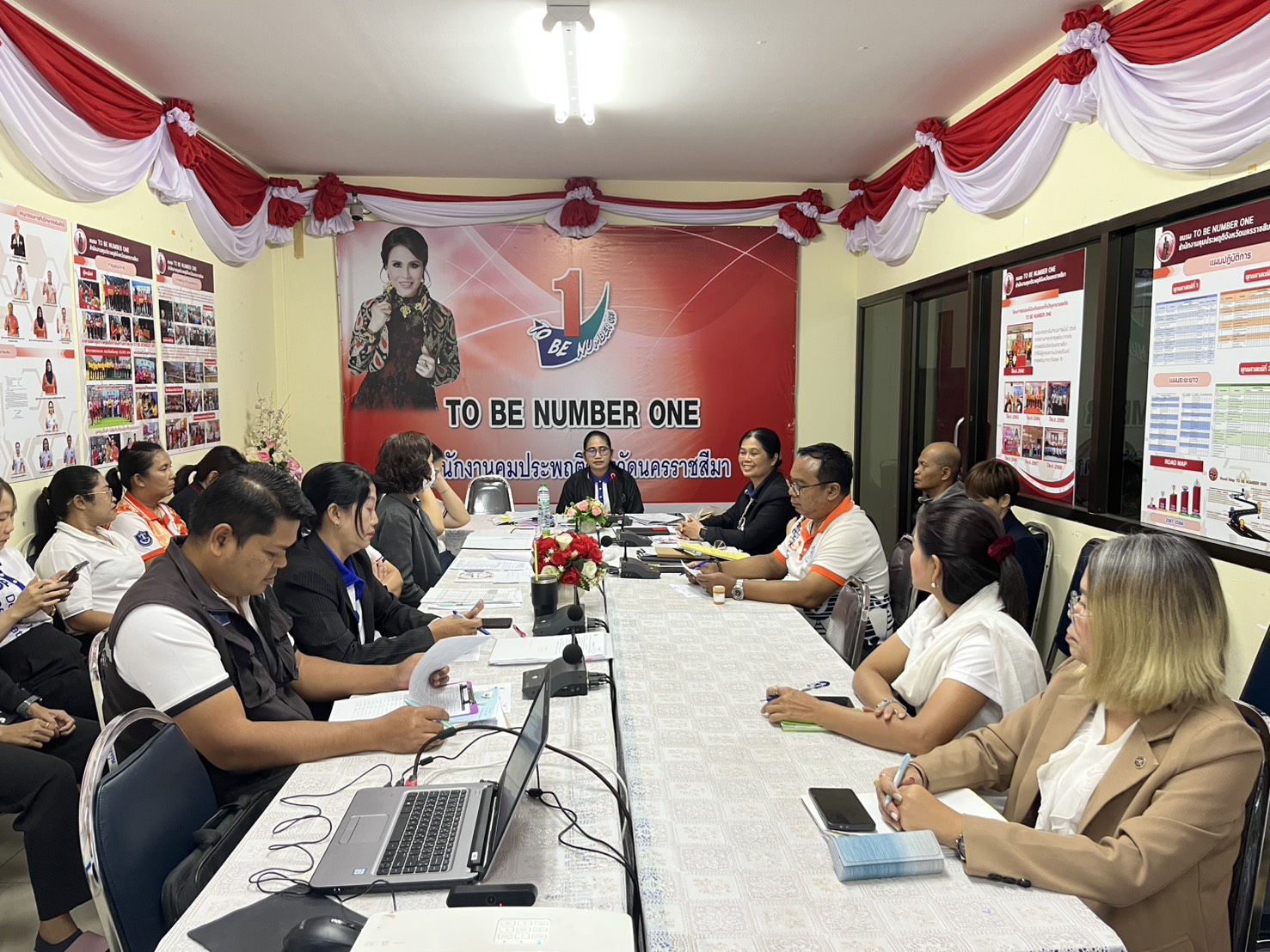 ในวันพุธที่ 22 ตุลาคม 2568 นางณัฐฐิญา โถสุวรรณ์ พนักงานคุมประพฤติชำนาญการพิเศษ รักษาราชการแทน ผู้อำนวยการสำนักงานคุมประพฤติจังหวัดนครราชสีมา พร้อมคณะเจ้าหน้าที่ฯ ประชุมสำนักงานประจำเดือนตุลาคม 2568 ครั้งที่ 2/2568 เพื่อสรุปผลการดำเนินงานประจำปีงบประมาณ พ.ศ.2568 และร่วมกันวางแผน กำหนดแนวทางแผนการปฏิบัติราชการในปีงบประมาณ พ.ศ.2569 พร้อมทั้งรับฟังปัญหา ข้อขัดข้องในการปฏิบัติงานของแต่ละกลุ่ม/ฝ่าย เพื่อร่วมกันหาแนวทางแก้ไขให้เป็นไปอย่างประสิทธิภาพ และสอดคล้องกับนโยบายของกรมคุมประพฤติ ณ ห้องประชุมชมรม TO BE NUMBER ONE สำนักงานคุมประพฤติจังหวัดนครราชสีมา
