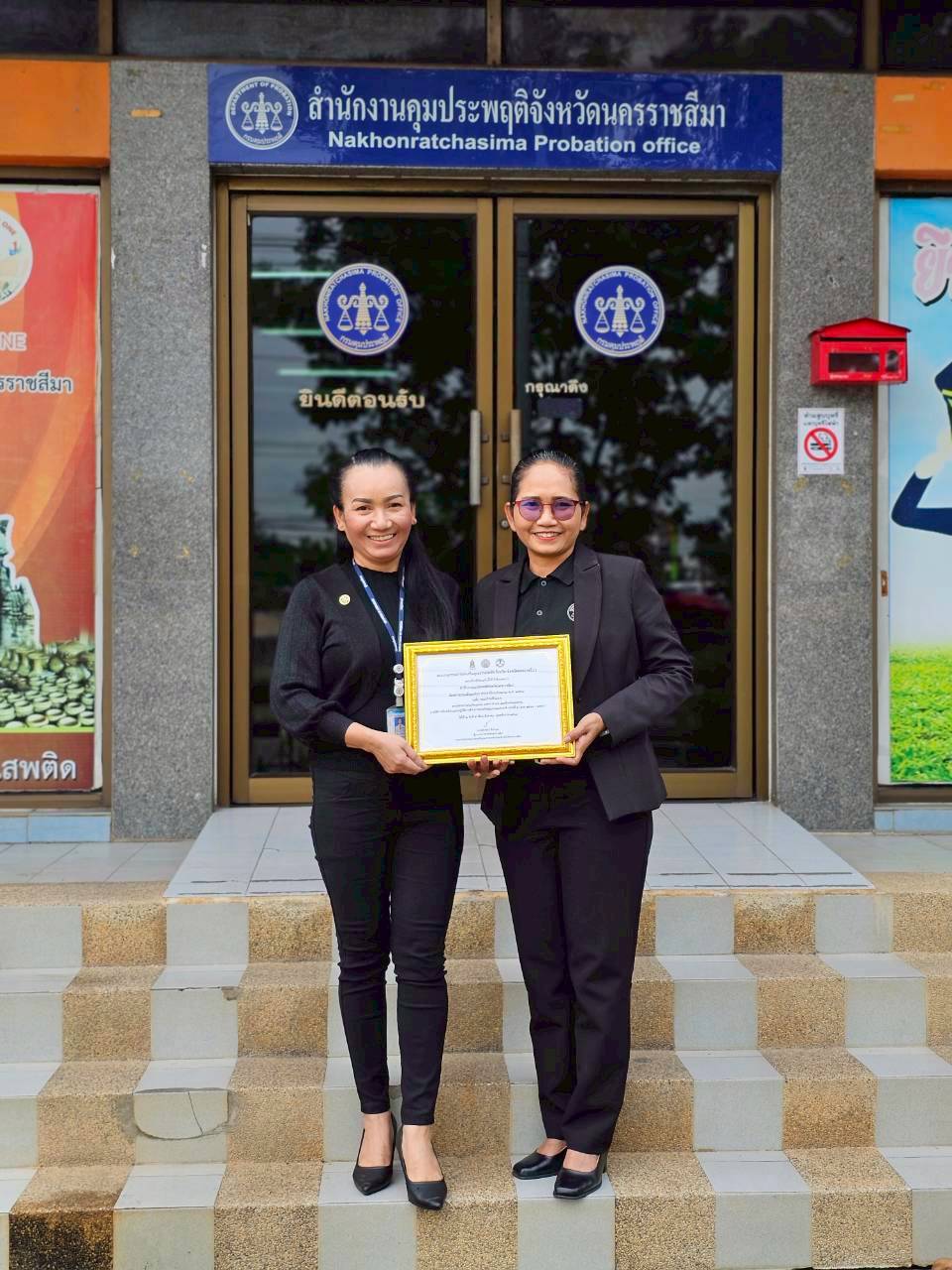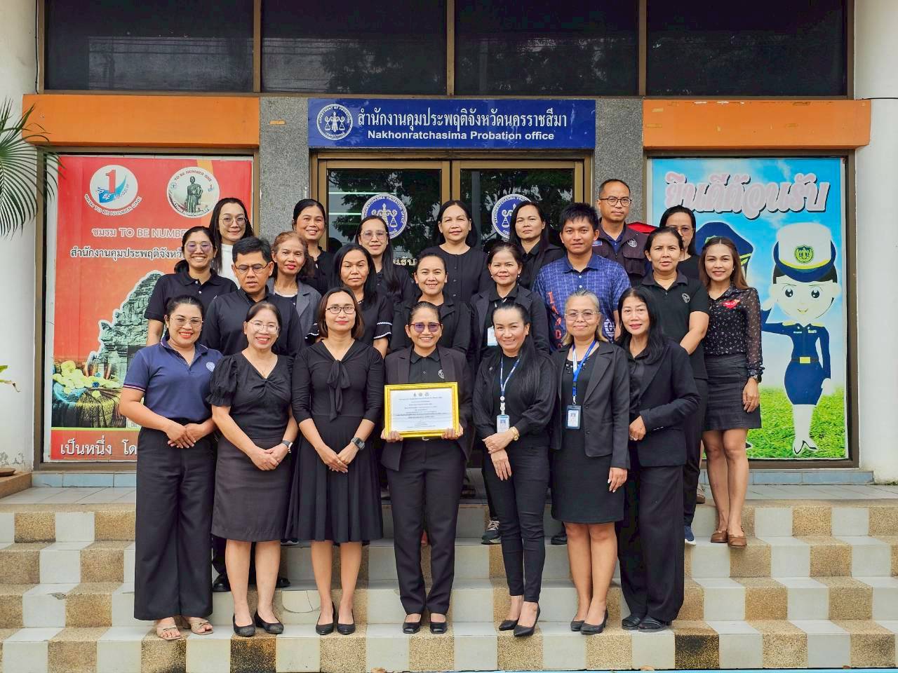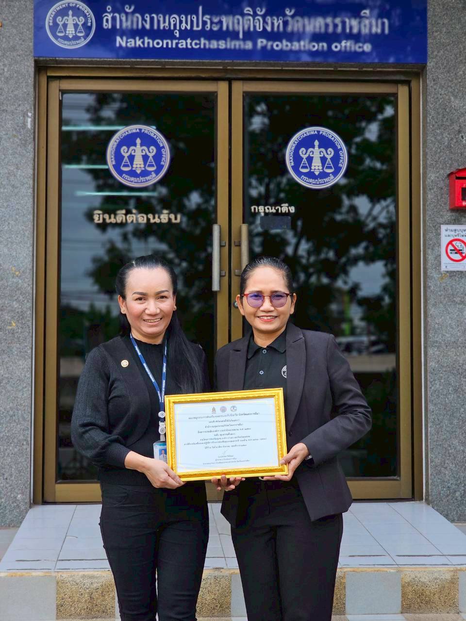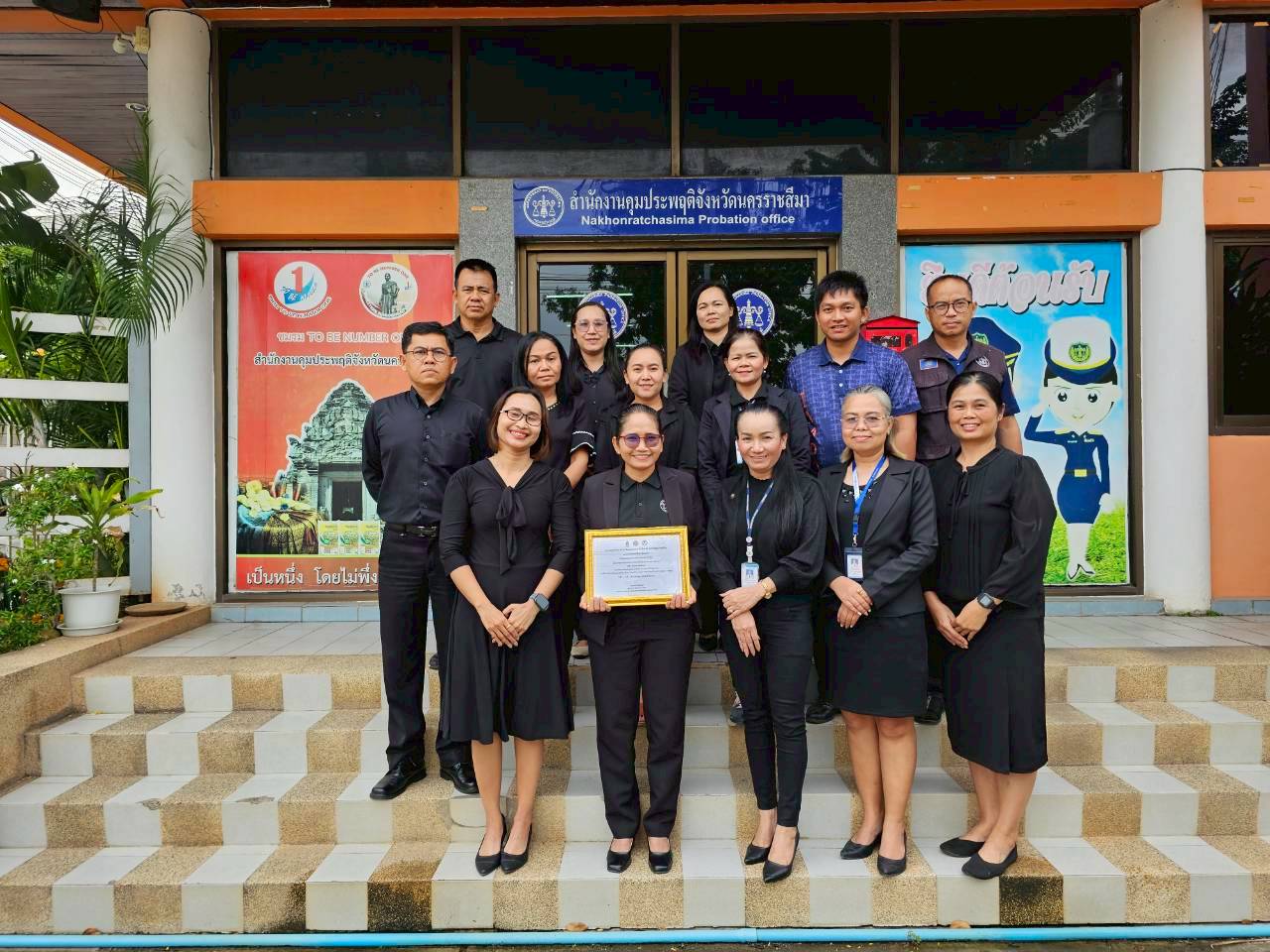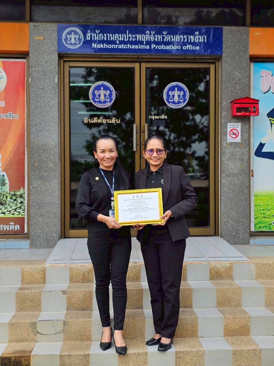 วันพุธที่ 29 ตุลาคม 2568 นางณัฐฐิญา โถสุวรรณ์ พนักงานคุมประพฤติชำนาญการพิเศษ รักษาราชการแทน ผู้อำนวยการสำนักงานคุมประพฤติจังหวัดนครราชสีมา เข้ารับเกียรติบัตร จากนายชัยวัฒน์ ชื่นโกสุม ผู้ว่าราชการจังหวัดนครราชสีมา ประธานคณะอนุกรรมการคุณธรรมจังหวัด จังหวัดนครราชสีมา เนื่องในโอกาสสำนักงานคุมประพฤติจังหวัดนครราชสีมามีผลการประเมินองค์กร ประจำปี งบประมาณ พ.ศ. 2568 ใน "ระดับ คุณธรรมต้นแบบ" ตามโครงการส่งเสริมชุมชน องค์กรอำเภอ และจังหวัดคุณธรรม ภายใต้การขับเคลื่อนแผนปฏิบัติการด้านการส่งเสริมคุณธรรมแห่งชาติระยะที่ 2 (พ.ศ. 2566 - 2570) ณ ศาลากลางจังหวัดนครราชสีมา ตำบลในเมือง อำเภอเมือง จังหวัดนครราชสีมา