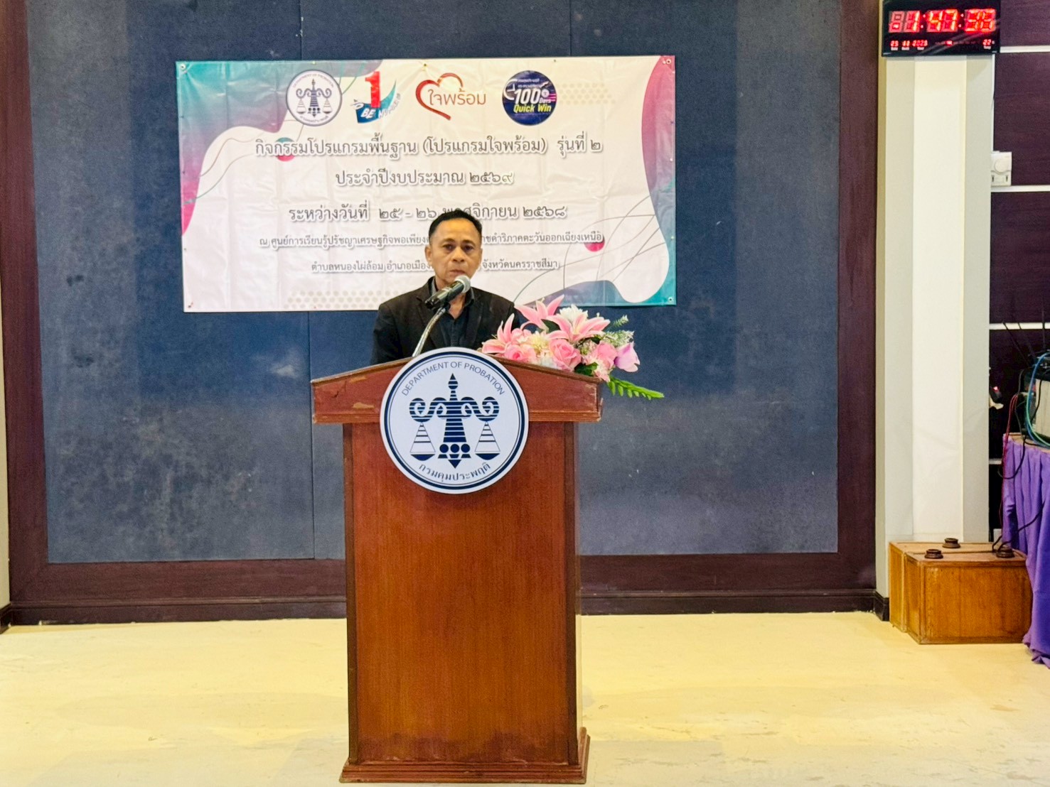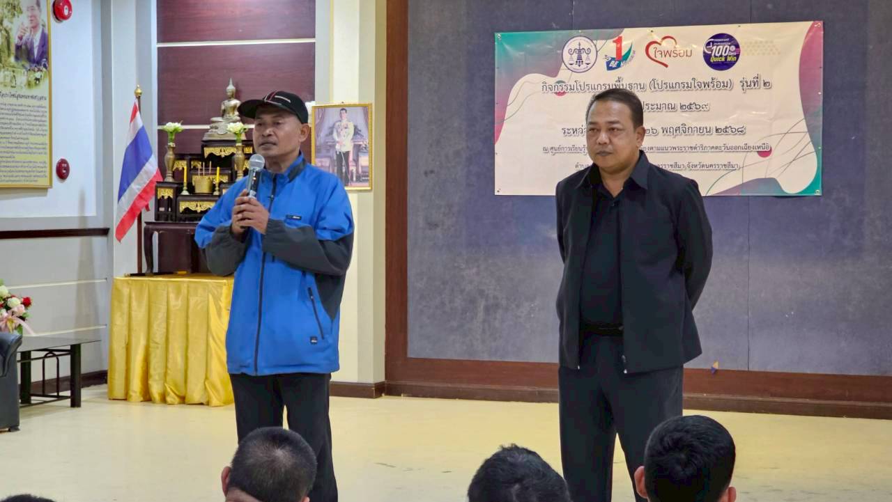 สำนักงานคุมประพฤติจังหวัดนครราชสีมา จัดโครงการโปรแกรมพื้นฐาน (โปรแกรมใจพร้อม) รุ่นที่ 2 ประจำปีงบประมาณ พ.ศ.2569 ระหว่างวันที่ 25-26 พฤศจิกายน 2568 มี ดร.เดชพล จันทร์ผ่อง ประธานอาสาสมัครคุมประพฤติจังหวัดนครราชสีมา เป็นประธานในพิธีเปิด โครงการฯ นางณัฐฐิญา โถสุวรรณ์ พนักงานคุมประพฤติชำนาญการพิเศษ รักษาราชการแทน ผู้อำนวยการสำนักงานคุมประพฤติจังหวัดนครราชสีมา ตรวจเยี่ยมค่ายพร้อมพูดคุยให้โอวาทแก่ผู้เข้าร่วมโครงการเพื่อเป็นขวัญและกำลังใจ และได้รับเกียรติจาก พันเอก(พิเศษ) ไตรภพ สมดี ประธานชมรมอาสาสมัครคุมประพฤติอำเภอเมืองนครราชสีมา พูดคุยให้กำลังใจกับผู้เข้าร่วมโครงการและกล่าวปิดโครงการอย่างไม่เป็นทางการ ผู้เข้าร่วมโครงการประกอบด้วยคณะวิทยากร,คณะอาสาสมัครคุมประพฤติ,คณะเจ้าหน้าที่ข้าราชการทหารและแขกผู้มีเกียรติ รวมจำนวน 72 คน ณ ศูนย์การเรียนรู้ปรัชญาเศรษฐกิจพอเพียงภาคตะวันออกเฉียงเหนือ อำเภอเมืองนครราชสีมา จังหวัดนครราชสีมา